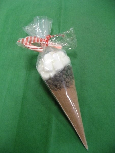 Another home made staple! Everyone will love these and the great thing is that you can easily adjust the amounts in the cones to suit the number of people in the family you’re gifting to, and just adjust the instructions accordingly. I’m putting Greene & Black’s organic hot chocolate in mine along with Waitrose Belgian dark chocolate chips and mini pink and white marshmallows. I also read a tip that suggested that you pack the hot choc mix into its own cone and seal that with a mini elastic band. You then trim off the excess of the bag, drop it into another cone, then fill that with the choc chips and marshmallows, which is a great idea and will keep the chocolate powder separated.