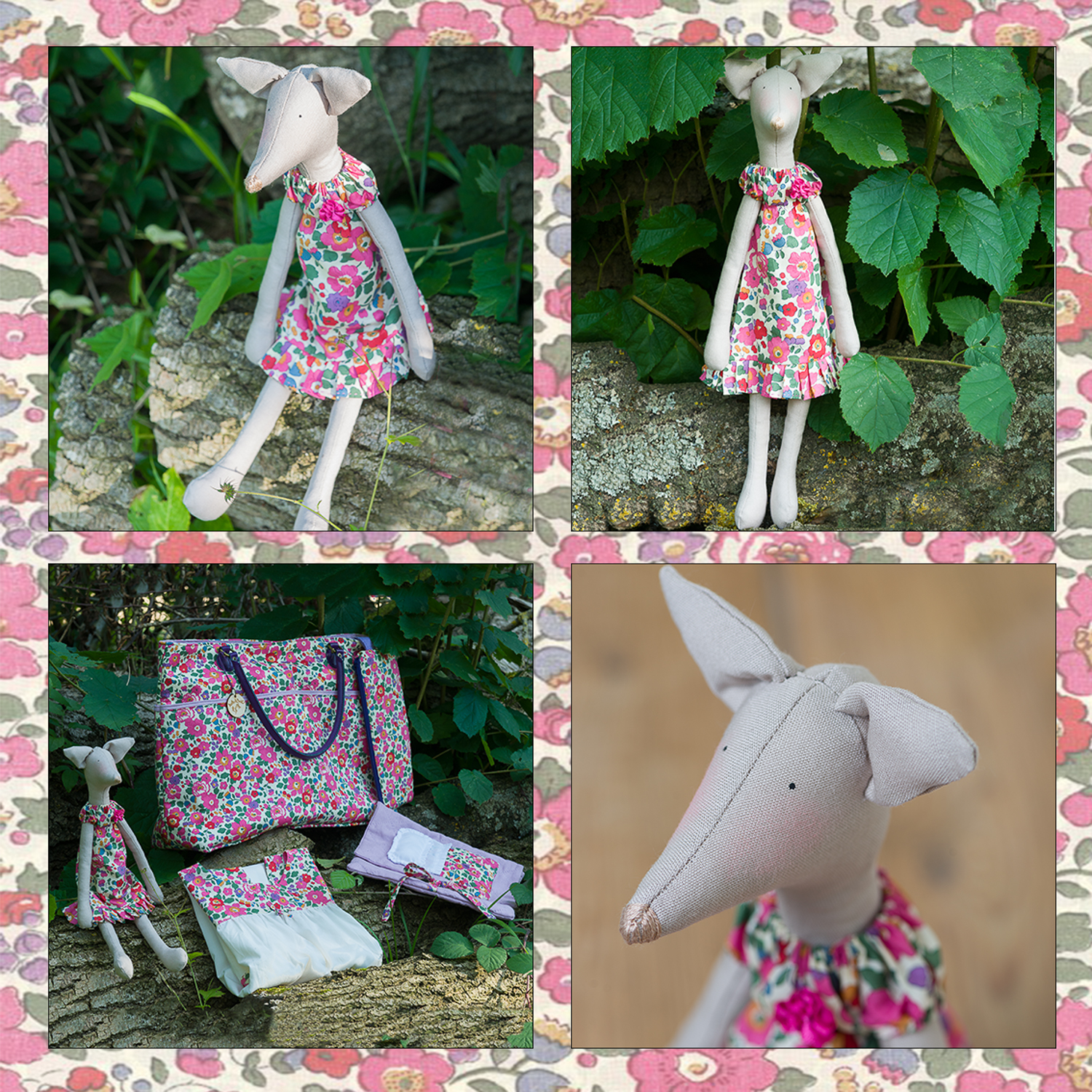 Riding along in the bag and acting as confidence mascot, is Miss Emma Fox, who is wearing a hand stitched, pleated edge dress. Miss Emma is named for Emma Woodhouse, the heroine of Jane Austen’s novel, ‘Emma’ and she loves art and music, solving riddles, and matchmaking among her friends. Miss Emma is made by me (Debbie) to a Tilda pattern with quality cotton fabric and her postitionable arms and legs are attached with pretty heart shaped shell buttons. She stands 40cm tall and she is a decorative figure, rather than a CE approved toy. When not on a sleepover, she will happily sit on a shelf or chest in your little girl’s bedroom, and generally look pretty.
