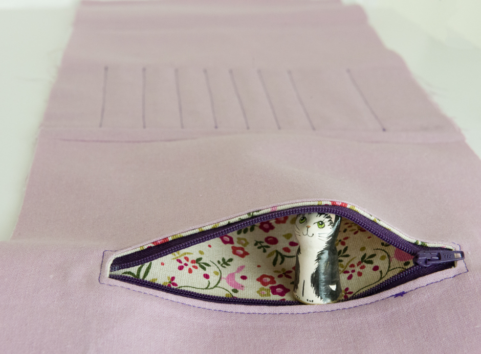 As usual with me, nothing can be straightforward, and perish the thought that anything I make should fulfil just one requirement – no of course not! My crochet hook case must also function as a sewing case and have safe storage for other ‘things’ – whatever they might be. So I brewed the idea for a few days and started to construct the case in my head, made a few sketches and then started refining the look of it, selecting fabric and features, interlining, closures and all that jazz. Finally, I got all my materials together and started cutting, lining and stitching, starting with the lining of the case, which would give me an opportunity to learn something new and add a lined zipped pocket:
