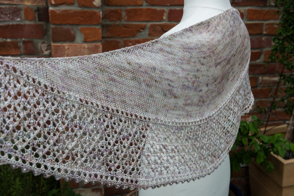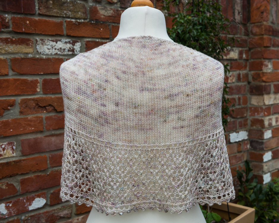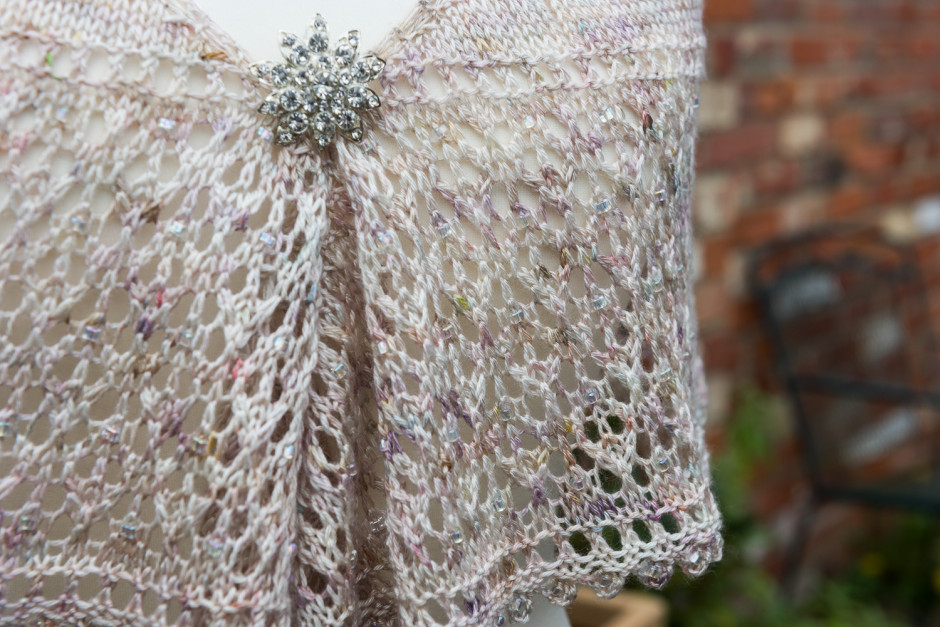 Most of my time at the moment is being devoted to my little hexie patchwork quilt, but I always have some knitting and crochet on the go to provide a little variety, and I've just finished this lace and beaded shawl: