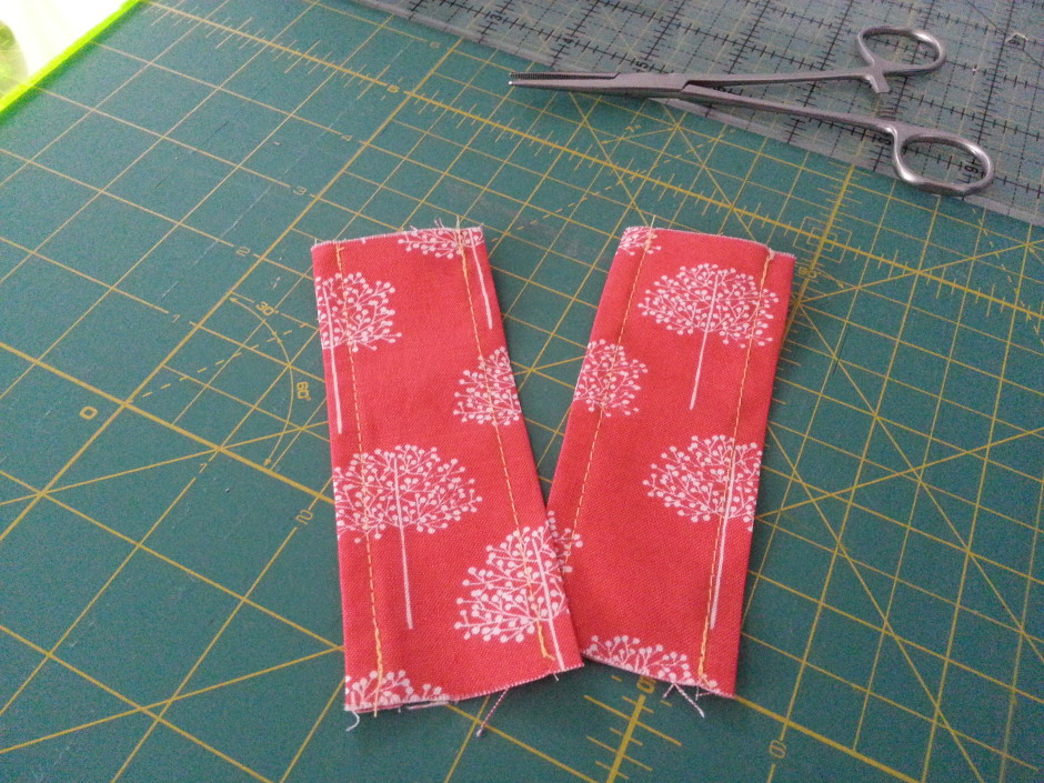 Turn each piece right side out and press, making sure the seam you just made is nice and flat, before adding a little decorative top stitching 1/4" in on each side: