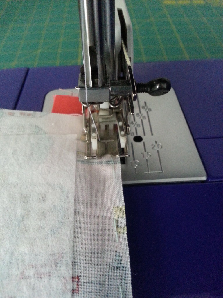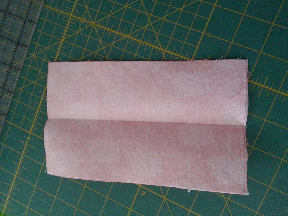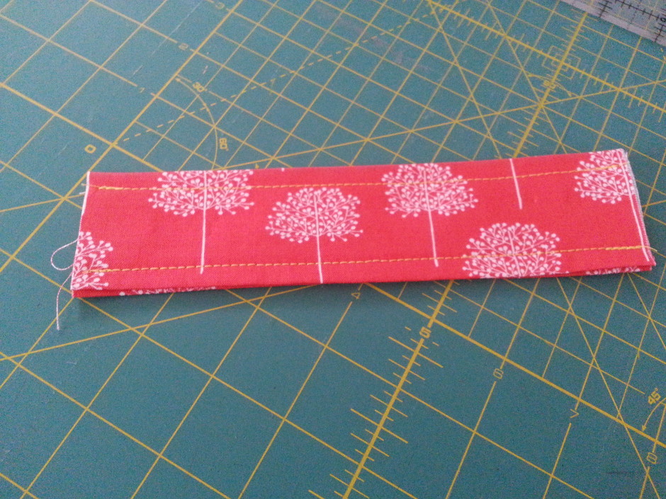 The handle should now be cooled down so we can work on that next. Take it to the ironing board and fold and press in half lengthwise, wrong sides together: