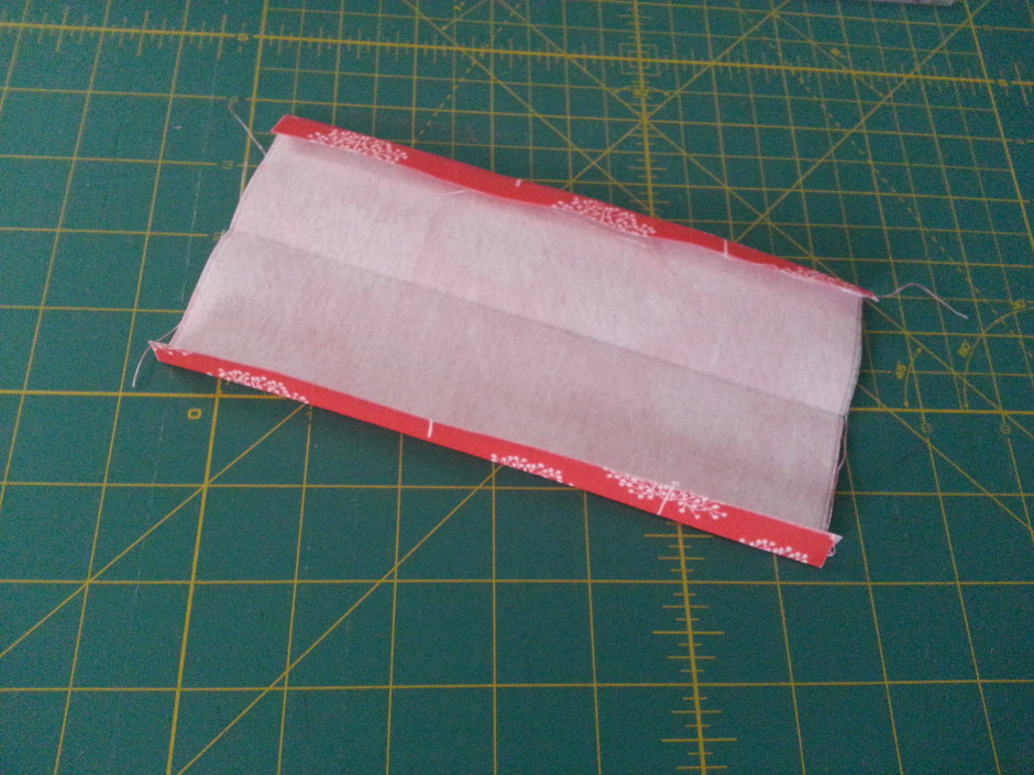 Cut a matching piece of medium weight interfacing, fuse to it and set aside to cool for 20 minutes. Now cut out 2 pull tabs at 4" wide and 4.5" long each: