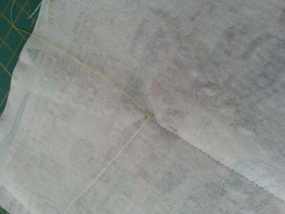 Remove the pins and tape and take the ends of your top threads through to the back where you can tie them off as we did before with the pocket piece on the lining: