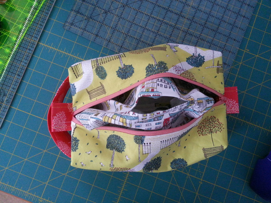 This very unprepossessing boxy zipped project bag is one that goes with me, whenever I'm on the move: