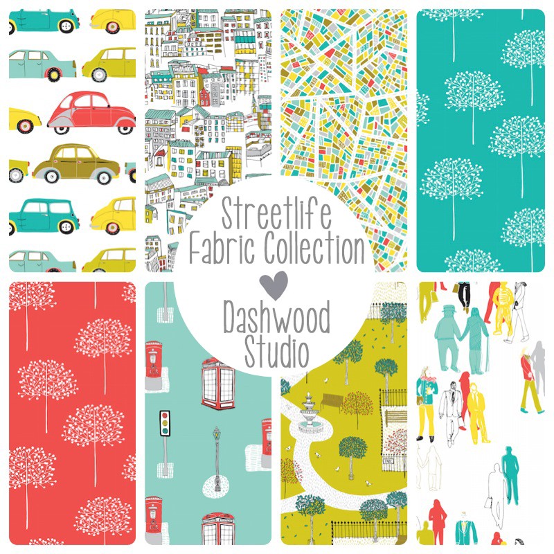 My fabric choice for these bags was easy as soon as I saw Dashwood Studio's Street Life collection, I thought it'd be perfect for a travel project bag – it's always fun to theme your fabric with your subject and I love the cheerful colour palette of this collection: