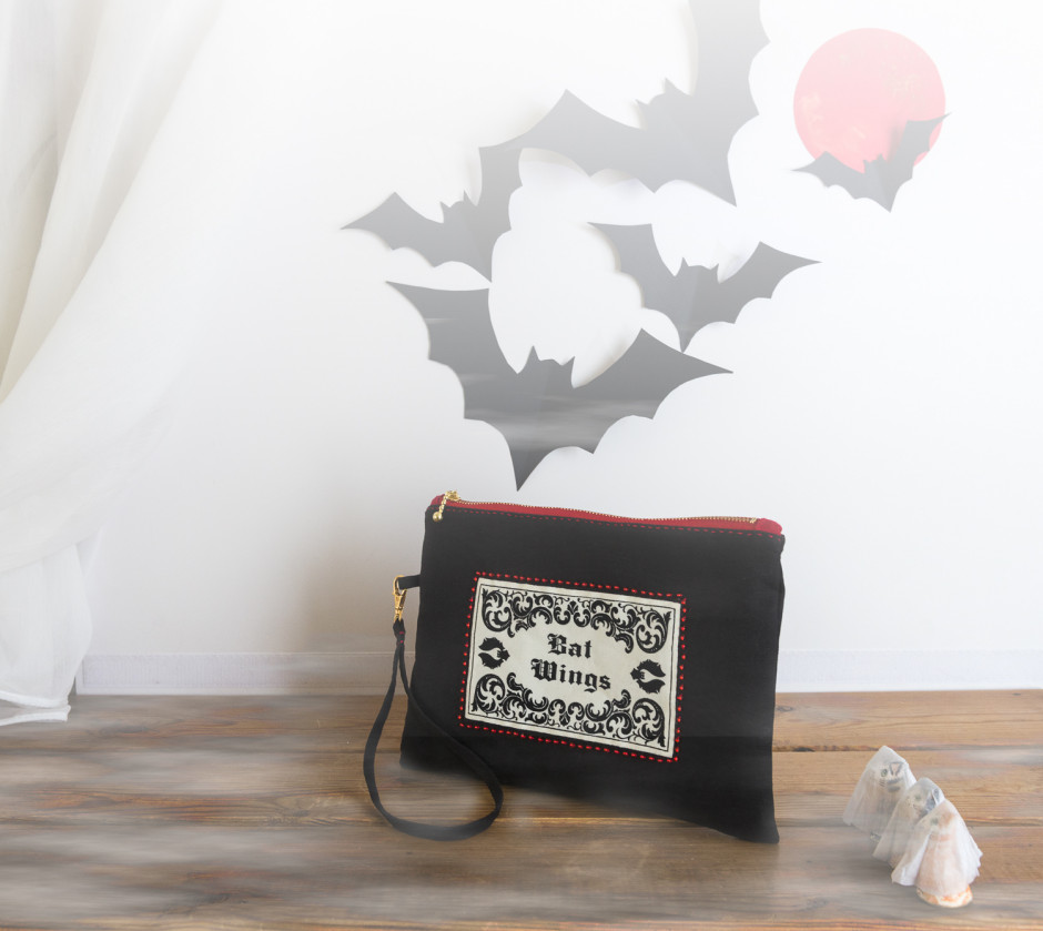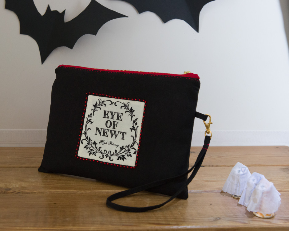 Whilst surfing Pinterest the other week I noticed lots of Halloween pins beginning to appear in my feed and this must have got into my subconscious because when I spotted some spooky looking label fabric the next day, I decided I wanted to make something with a Halloween theme. At first I thought I'd do a project bag but then I started remembering fun Halloween nights out and decided to make something I'd love to have had back then – a little wristlet clutch:
